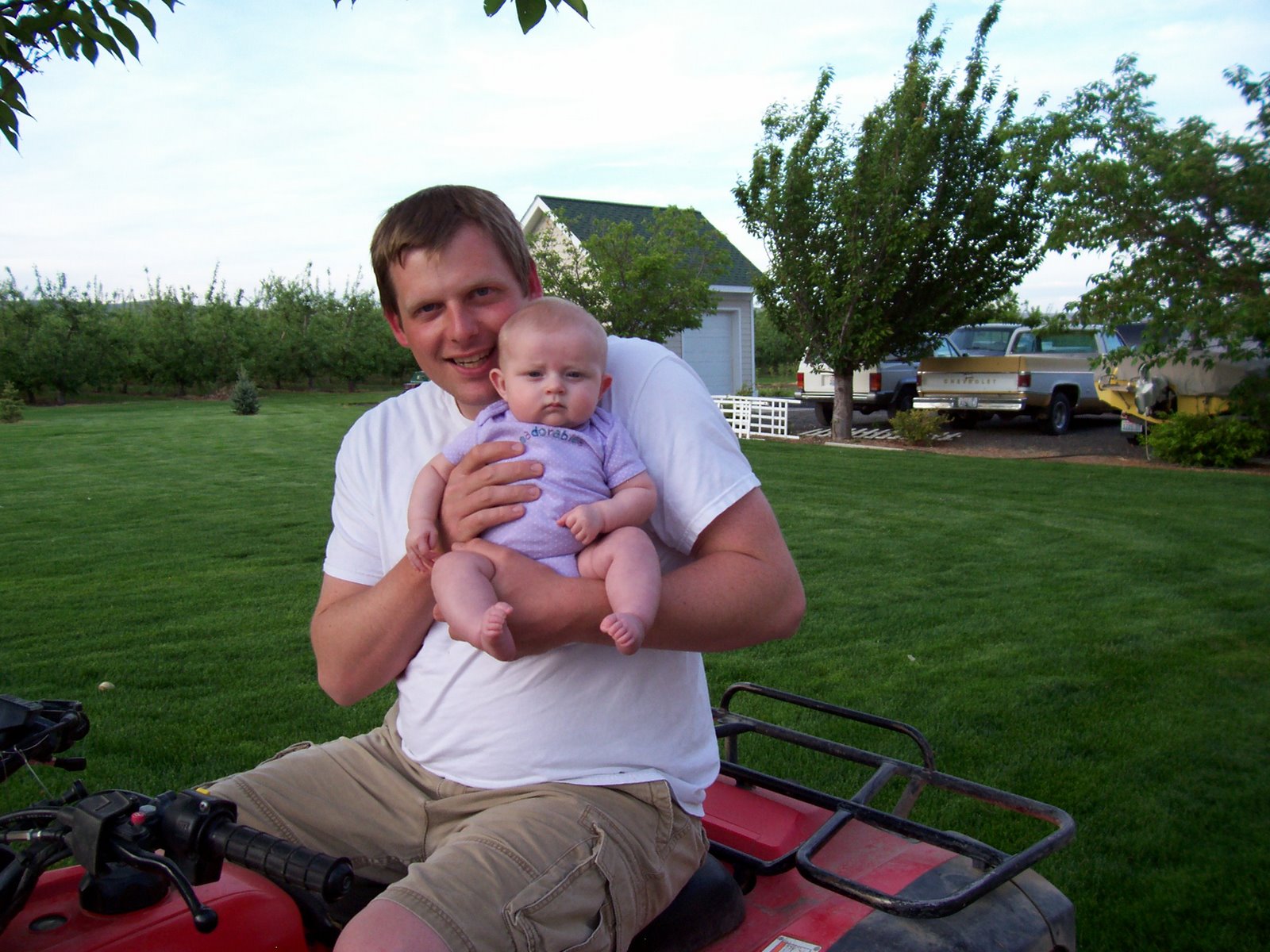 Here is Belle with Jarod on her first 4-wheeler ride. As you can see she isn't that impressed.